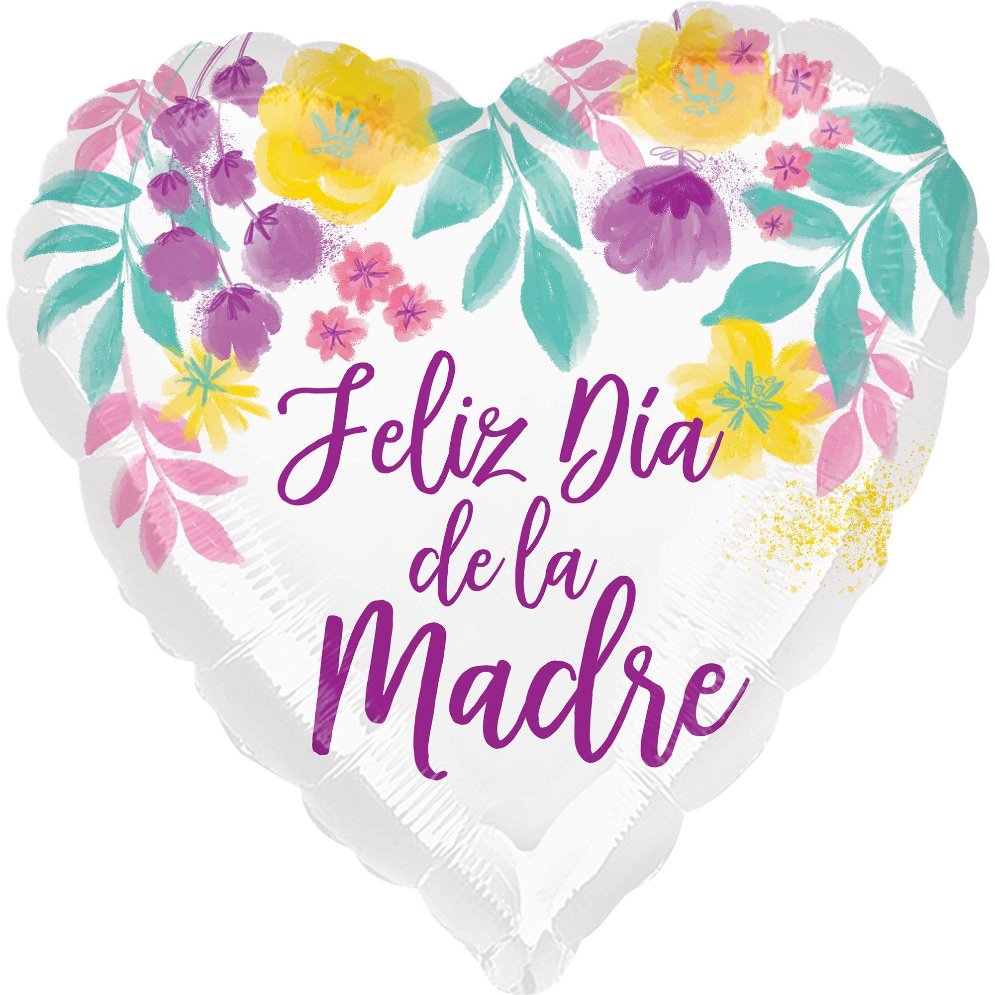 Floral Feliz Dia De La Madre Heart Foil Balloon 36in Party City